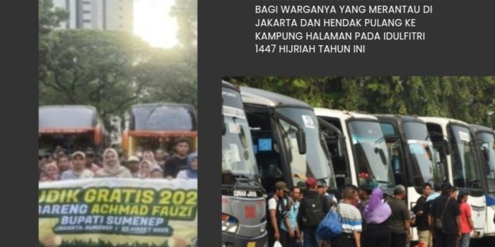 DAMAIRA.CO.ID, SUMEMEP-Pemerintah Kabupaten (Pemkab) Sumenep, Jawa Timur, kembali menggelar program mudik gratis bagi warganya yang merantau di Jakarta dan hendak pulang ke