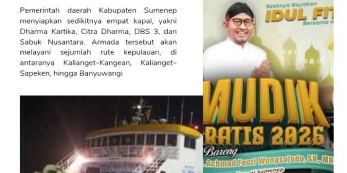 DAMAIRA.CO.ID, SUMENEP-Pemerintah Kabupaten (Pemkab) Sumenep menyiapkan empat armada kapal laut dan delapan armada bus untuk program mudik gratis Lebaran 2026. Program ini