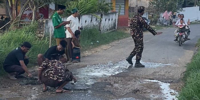 Ansor-Banser Pasongsongan Perbaiki Jalan Rusak Secara Swadaya di Bulan Ramadhan