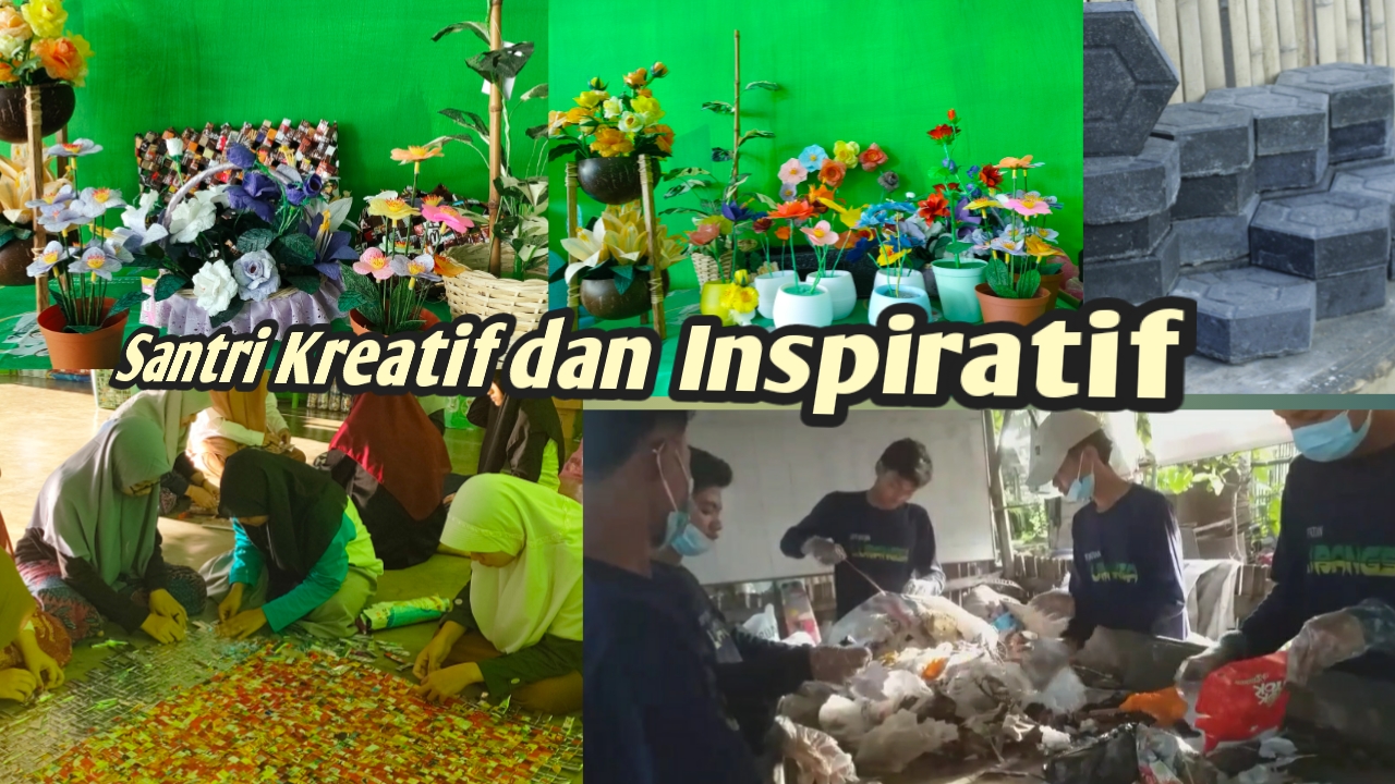 Sementara santri putri juga tidak kalah kreatifnya. Mereka mendaur ulang sampah menjadi hiasan cantik. Seperti bunga, boneka, pot dan hiasan lainnya.