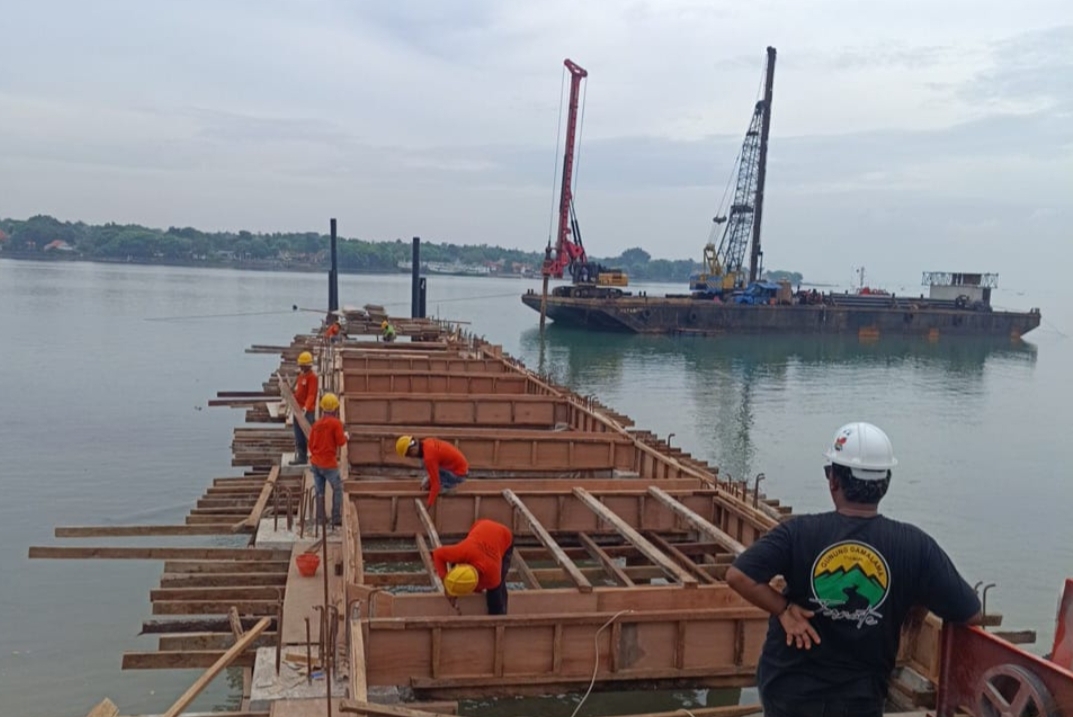 Penanggung jawab kegiatan di lapangan, Edy Purnomo, menyampaikan bahwa hingga saat ini progres kemajuan pekerjaan pembangunan Pelabuhan PELRA telah mencapai 36 persen ditambah 2,3 persen.